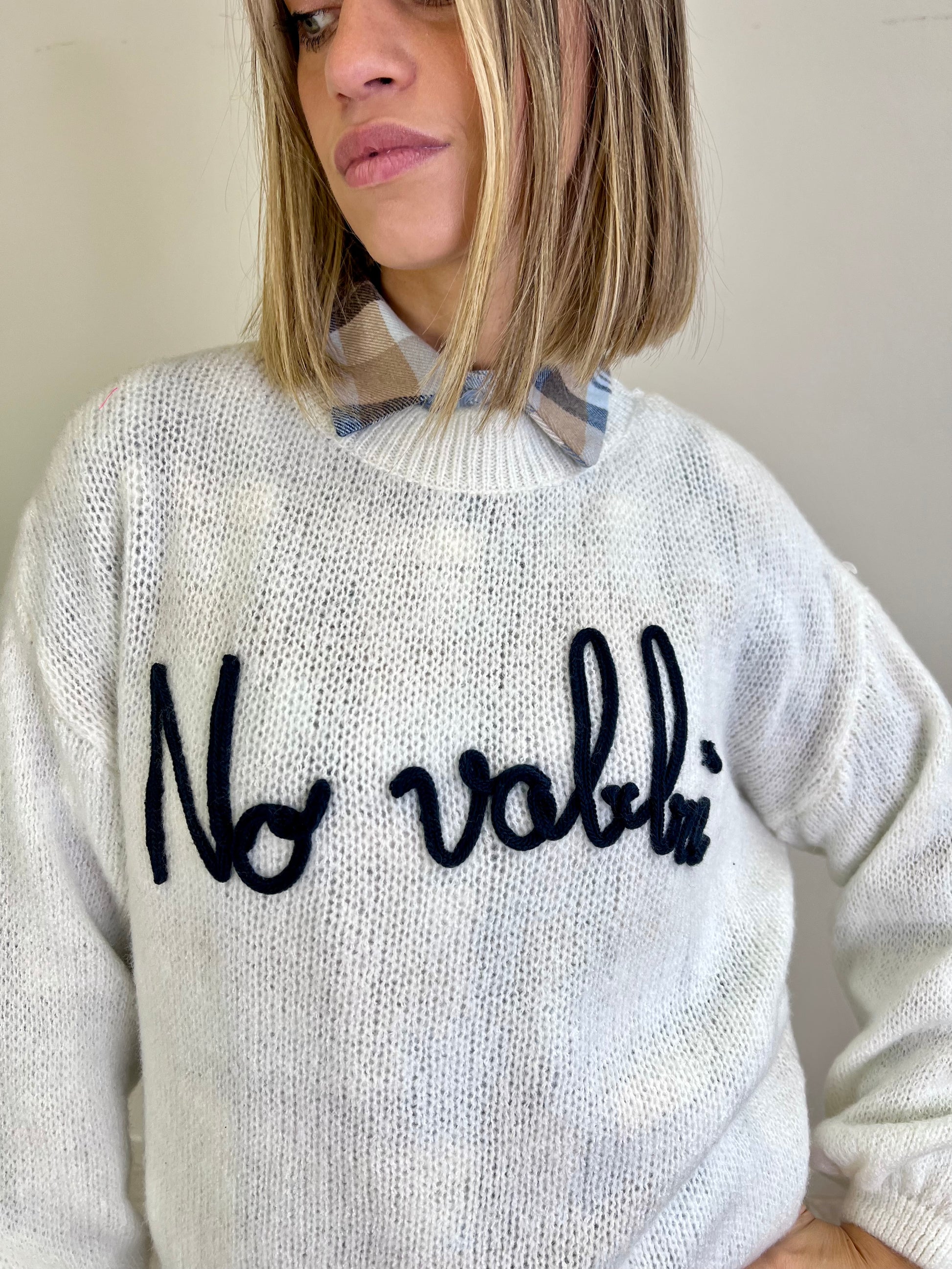 MAGLIONE NO VABBÈ panna scritta blu